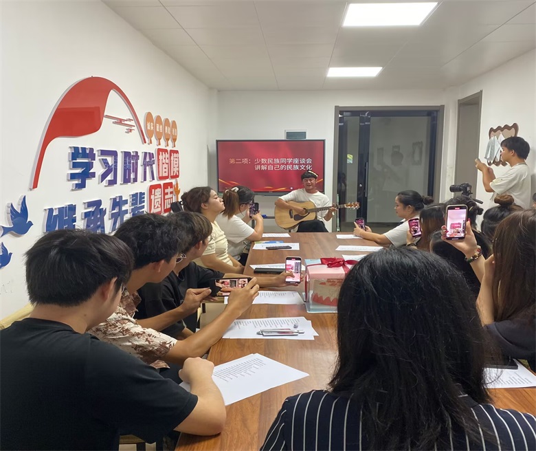 活动现场,国歌悠扬,序幕轻启。少数民族同学如星辰闪耀,登台细述民族文化,才艺展示绚烂多彩。汉族学生讲述对民族文化的深刻理解,促进各民族交流交往交融。随后,大家一起观看民族团结模范事迹与宣传片,齐声诵读红色经典《可爱的中国》,少数民族学生用民族语言诵读。最后,大家齐声合唱歌曲《爱我中华》,祝贺新中国75周年华诞,每位同学为祖国母亲送生日祝福,少数民族学生同时用民族语言祝福祖国母亲生日快乐!