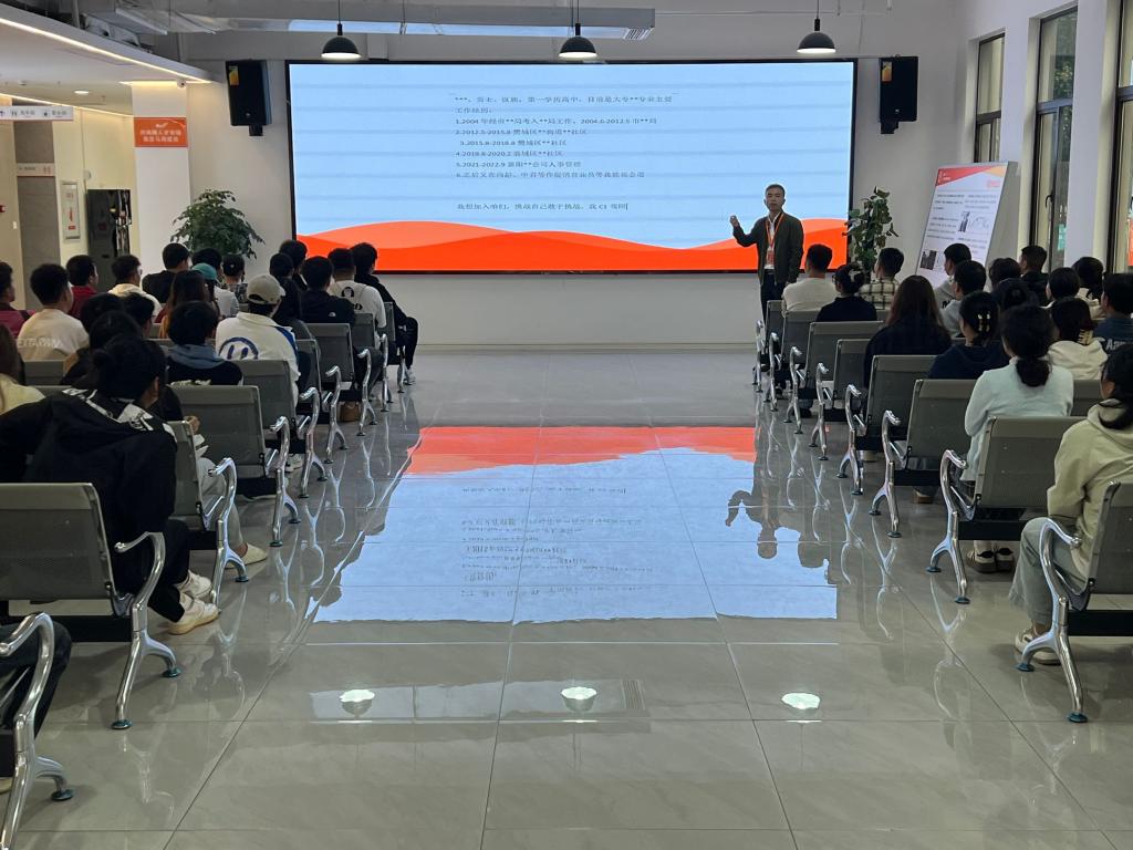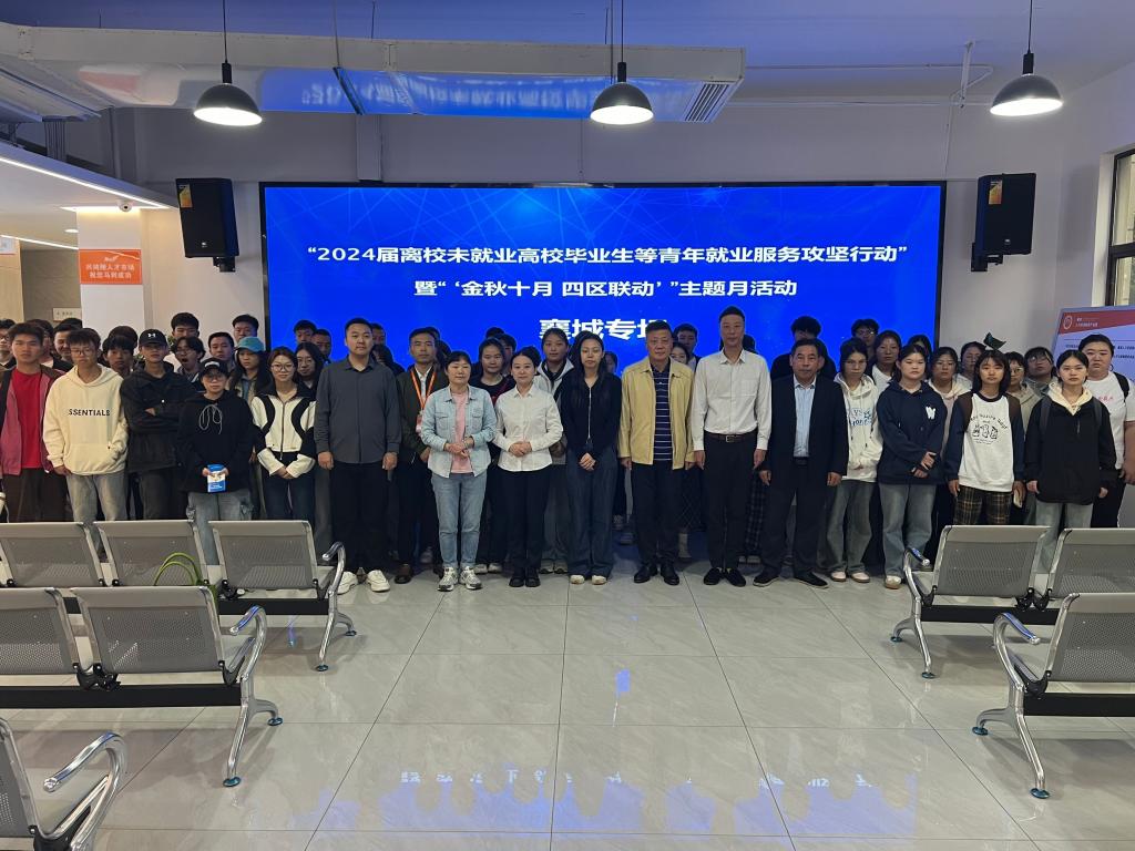 (招生就业部 王刚)为推进2024届毕业生充分就业,10月12日上午,襄城区公共就业和人才服务局举办“2024届离校未就业高校毕业生等青年就业服务攻坚行动”暨“金秋十月四区联动”主题活动,招生就业部王刚老师带领我校2024届未就业毕业生前往参加,其中还有4名同学参加了政企座谈会。