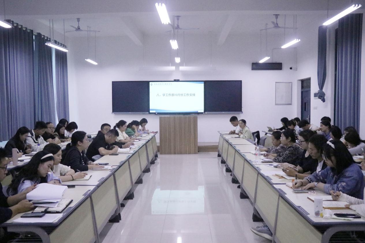 (通讯员 司泽坤)10月10日,学生工作部在1教305教室召开10月份学生工作例会。学生工作部全体成员及全体辅导员参加本次会议。会议由学生工作部部长、团委书记宋功成主持。