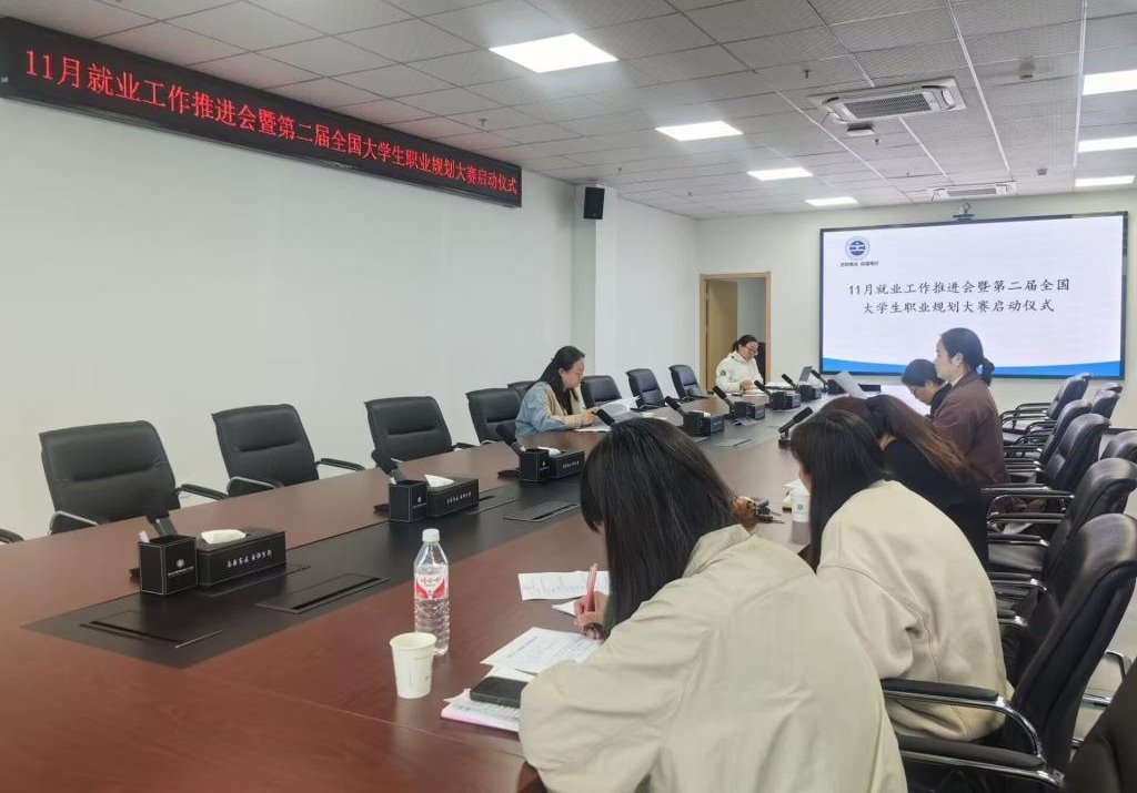 (招生就业部 左林)11月8日下午,招生就业部在图书馆722会议室开展11月份就业工作推进会暨第二届全国大学生职业规划大赛启动仪式。招生就业部部长章莉、学生工作部部长宋功成和各二级学院党总支书记参会。会议由招生就业部左林主持。