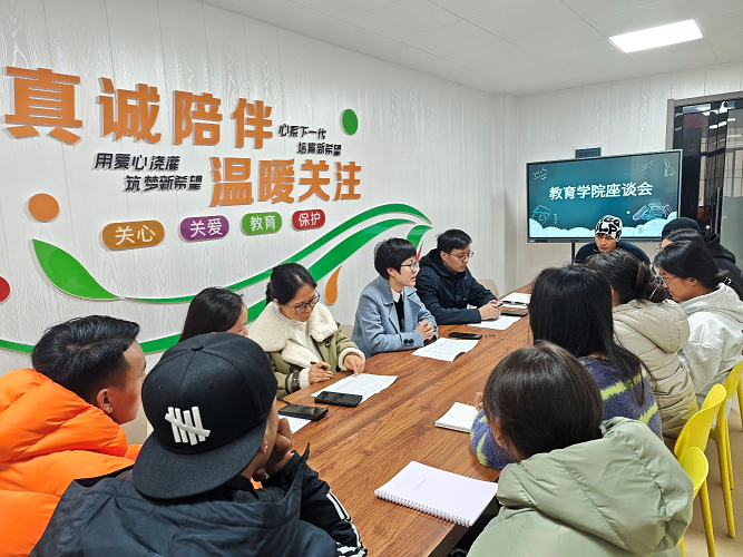 座谈会上,学生代表进行自我介绍,并分享在校学习生活情况、困难需求以及对学校管理服务的意见和建议。教育学院党总支书记骆小青向同学们介绍了学院对学生在学业、生活等方面的帮扶指导举措。