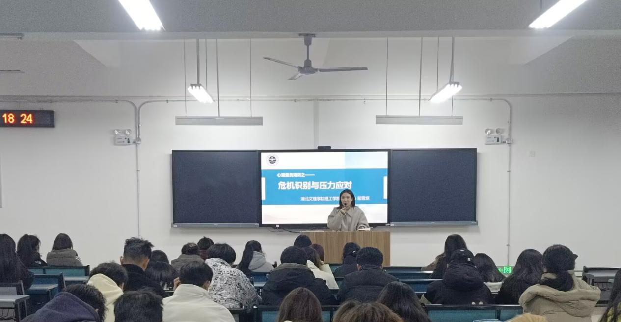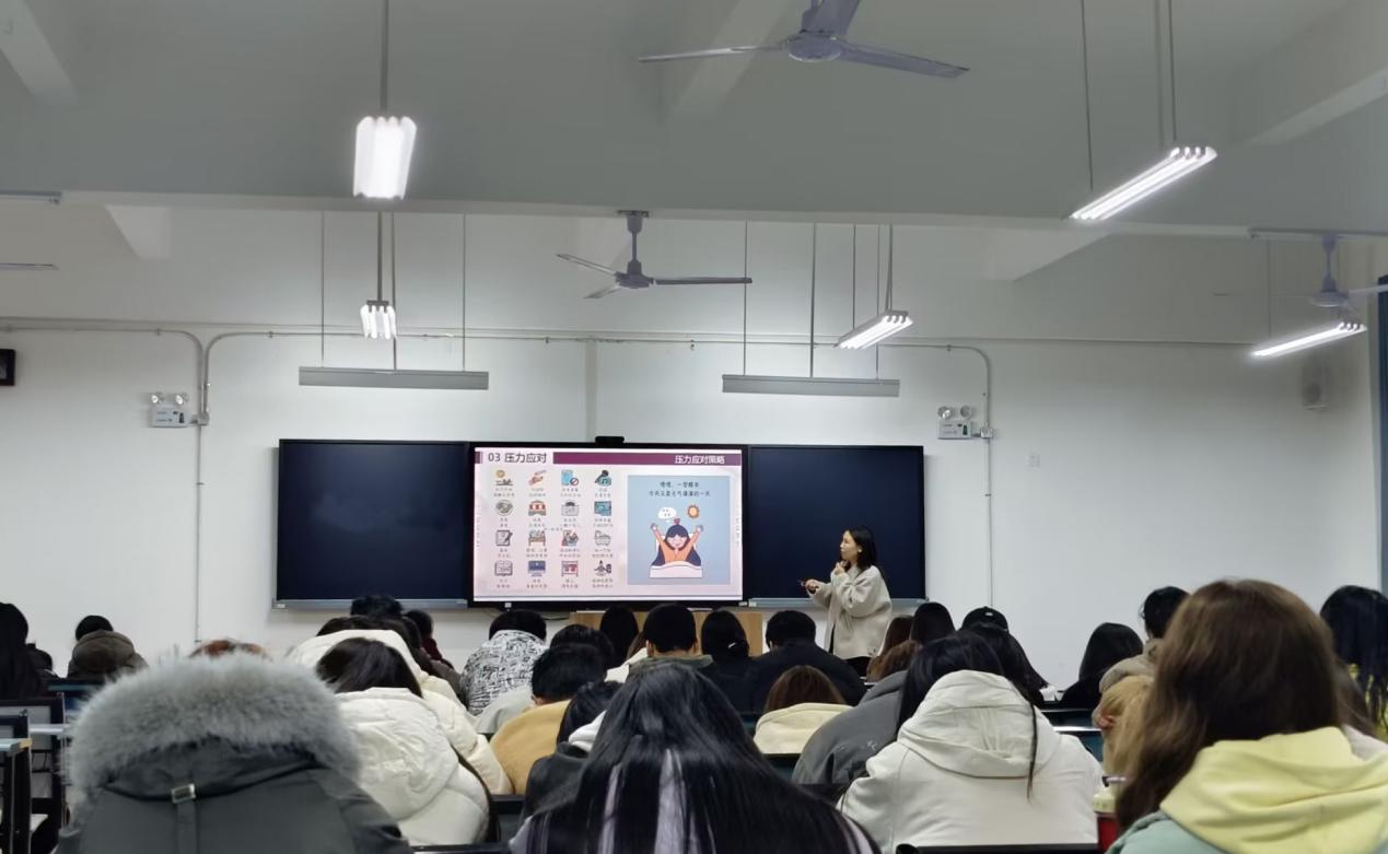 在危机干预板块,鄢雪琪重点讲解了危机干预的原则、方法和技巧,明确指出能正确识别就已经完成了80%的干预。在压力应对板块,鄢雪琪特别强调了期末备考期间同学们所面临的心理压力与负担。她指出,随着期末考试的临近,同学们不仅要面对繁重的学业任务,还可能承受来自家庭、社交等多方面的压力,这些压力容易引发心理危机。