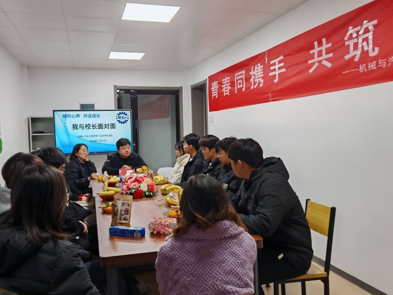 (通讯员 乐心蕾)为加强师生沟通,倾听学生声音,促进学生全面成长,11月27日下午,机械学院于一站式学生社区举办了“我与校长面对面”学生代表座谈会。此次座谈会特邀学校副校长周伟担任主讲嘉宾,机械学院党总支书记刘晓君和学生代表共同参加。