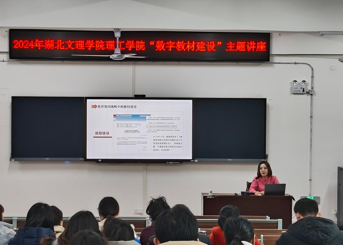 (教学科研部 安菉)12月5日下午,教学科研部在一号教学楼105报告厅成功举办了主题为“数字教材建设”的专题讲座。职能部门相关负责人及各二级学院教师代表参加了本次讲座。讲座聚焦数字教材与数字资源建设的综合解决方案,以及数字教材的编写要点与出版注意事项。