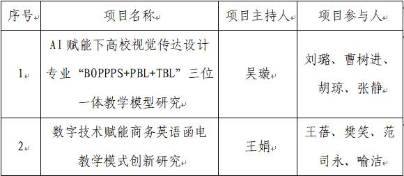 (教学科研部 贾珊珊)近日,湖北省教育厅公布了2024年度省级教学改革研究项目立项名单,我校有两个项目获批立项,其中一般项目1项,大学英语专项1项。截至目前,我校共获批省级教学改革研究项目9项。