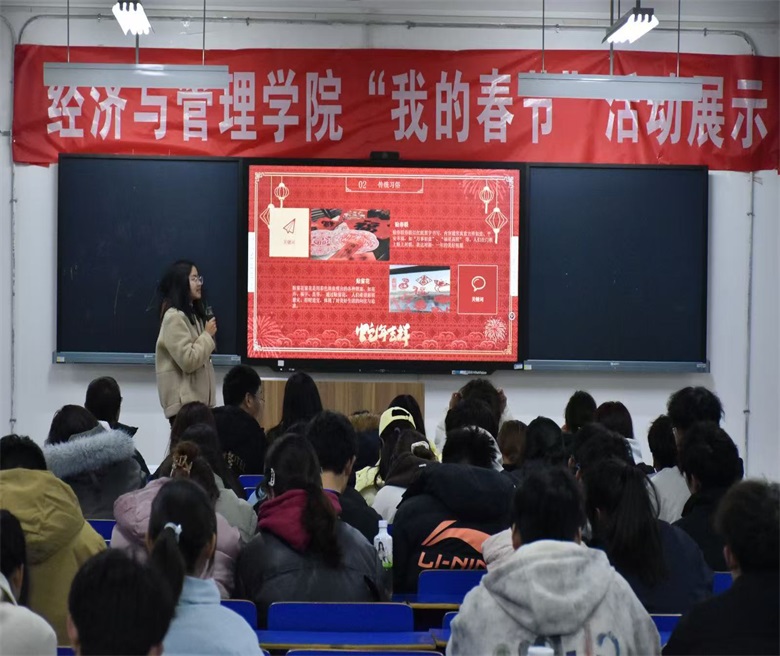 (经管学院 杨鼎 张一帆)青龙辞旧岁,灵蛇迎新春,春节是中华民族最隆重的传统佳节,更是成功申请非遗。2月20日,经济与管理学院在1教207教室举办“我的春节”活动展示。寒假期间,各族学子带着“记录家乡年”的任务返回故土,用镜头捕捉天南地北的春节故事。开学伊始,将这场特殊的“寒假作业”转化为一场沉浸式民族文化展映活动。旨在促进文化交流融合,增强各民族同胞的文化自信与民族自豪感。