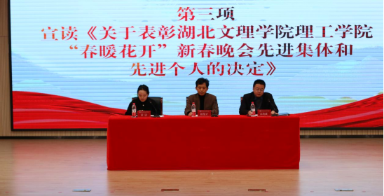 活动分两个阶段。在“春暖花开”新春晚会表彰大会上,宋功成宣读了《关于表彰yl8cc永利官网“春暖花开”新春晚会先进集体和先进个人的决定》,并对全体晚会辛勤付出的个人及组织进行颁奖。