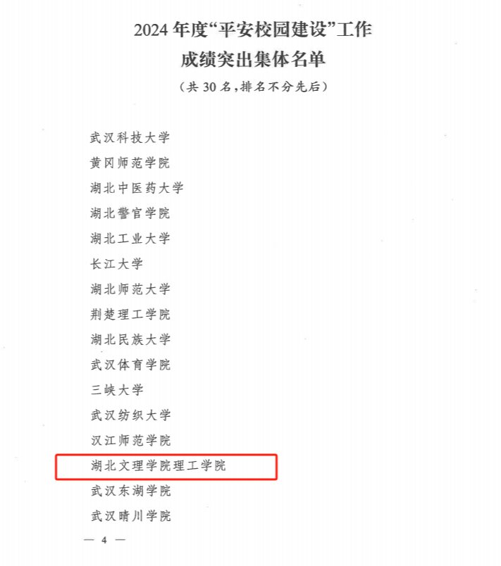 (后勤服务部 徐晴)近日,湖北省公安厅印发了《关于表扬2024年度“平安校园建设”工作成绩突出集体和个人的通报》。我校获评2024年度省“平安校园建设”工作成绩突出集体,成为民办同类院校获奖的3所高校之一,学校已连续两年获得此项荣誉。