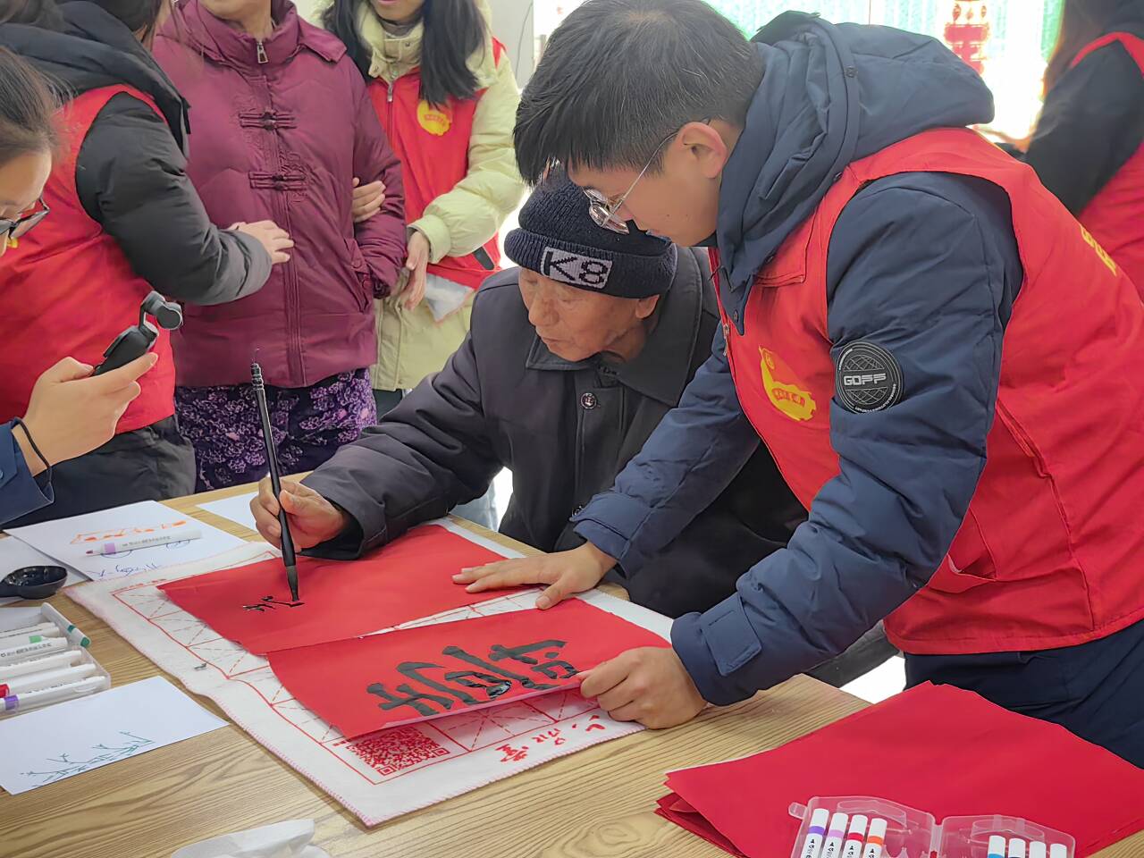 教育学院汉语言2316班50名志愿者在敬老院开展书法写作、环境清洁、才艺表演等活动。在书法展示区,志愿者们写下一幅幅寓意美好的书法作品,老人们连连称赞,现场洋溢着浓厚的文化氛围。志愿者们手持扫帚抹布,不放过任何一个卫生死角,为老人们打造更加整洁舒适的居住环境。志愿者们了解到当天有位老爷爷过生日,还精心准备了生日蛋糕和节目为其庆生,大家齐唱生日歌,老爷爷流下了感动的泪水。义剪区域,红十字会人员手法娴熟,认真为老人们理发,老人们理发后精神饱满,纷纷竖起大拇指。