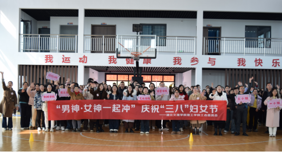 (党群工作部 杨娟)为庆祝第115个“三八”国际劳动妇女节,3月6日下午,校领导和全校近200名女教职工在篮球馆共同参与“男神女神一起冲”三八妇女节庆祝活动。