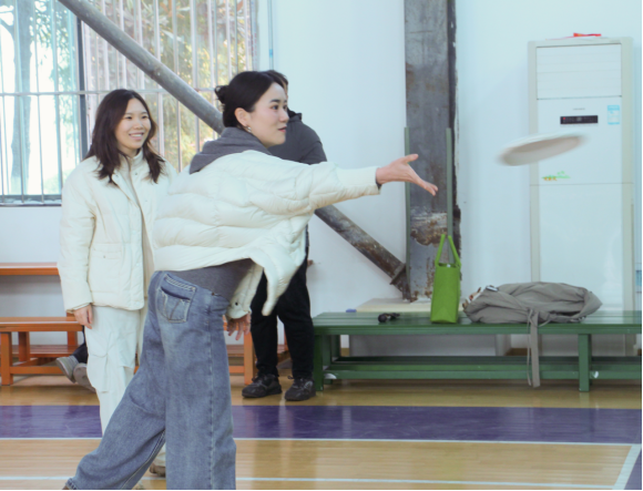 紧接着的“飞盘投掷赢惊喜”环节,女教职工在3米线外投掷飞盘,既有“一次就中”的专业,也不乏“天女散花”式趣味尝试,命中者欢呼雀跃,并领取定制伴手礼。