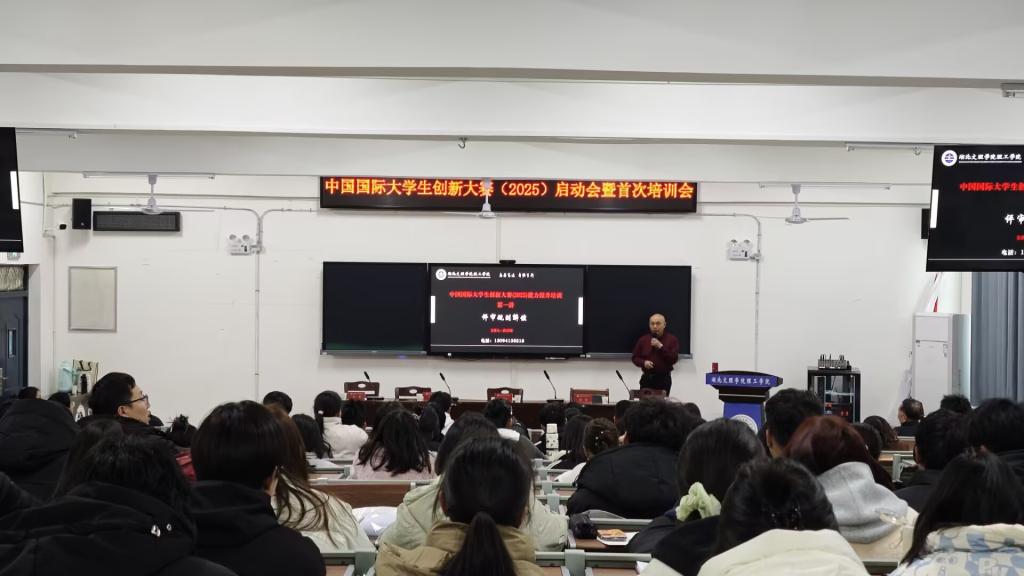 (通讯员 雷浩)3月6日下午,学校在1教105教室举办中国国际大学生创新大赛(2025)启动会暨首次培训会。副校长耿帮才、副校长周伟,以及相关职能部门、各二级学院师生代表共200余人参会。