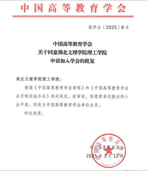 (教学科研部 李涛)3月18日,我校收到中国高等教育学会的入会批复,正式成为这一全国性高等教育学术团体的会员单位。获批入会不仅是对学校办学实力的充分肯定,也为项目申报搭建了更广阔的学术交流与合作平台,开启了高质量发展新篇章。