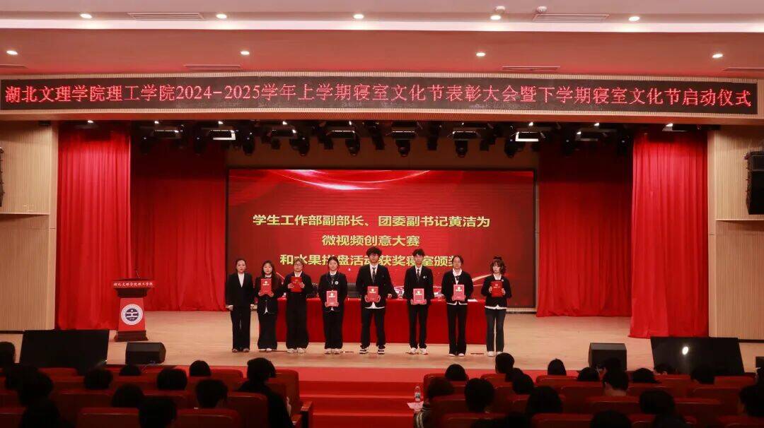 会上首先宣读了《关于表彰2024-2025学年上学期寝室半军事化管理和寝室文化节先进个人和集体的决定》并为获奖的寝室和先进个人颁奖;随后宣读了《关于开展2024-2025学年下学期寝室文化节活动的通知》。据介绍,2025年下学年寝室文化节将以“衣、食、住、行”为主题,开展多项丰富多彩的寝室活动,共同营造温馨、和谐的寝室氛围。