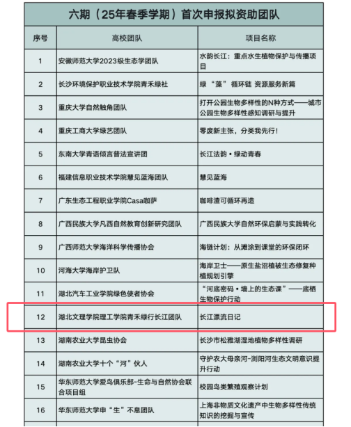 (艺传学院 朱锐 雷筱涵 朱富)近期,我校艺传学院青禾绿行长江团队以“长江漂流日记”为题,成功申报涓流行动“一个长江”大学生环保活动资助项目。
