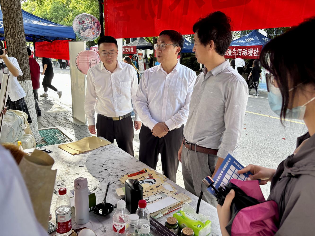 开幕式后,校领导参观了“二十四番花信游·社团趣韵满园留”主题游园会,与社团成员亲切交流,对各社团工作给予肯定。游园会巧妙融合24节气元素,通过特色展示、互动体验等形式展现社团魅力。同学们积极参与集章打卡活动,在互动中收获知识与奖品。