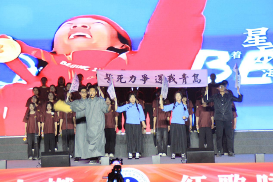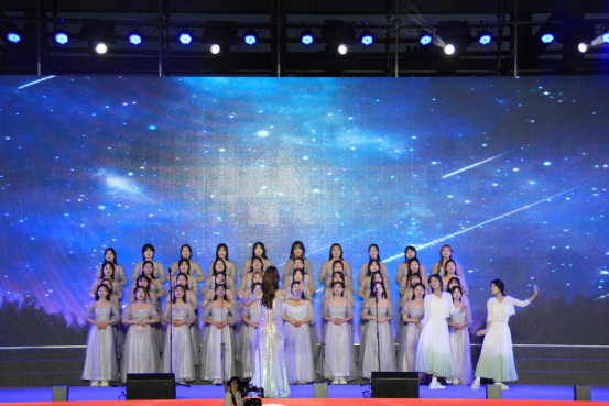 舞台上,同学们通过队形变换、舞蹈编排、鼓乐伴奏等创意形式,为红歌注入青春活力。每支参赛队伍都以最佳状态展现新时代青年的风采,彰显了青年学子对红色文化的深刻理解与传承。现场观众挥舞的荧光棒汇聚成璀璨星河,象征青年与祖国血脉相连。