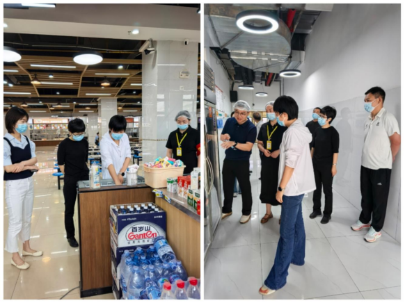 上午8时45分,徐敏一行对学校食堂开展全面检查,重点对食堂环境卫生、食品储存条件、加工操作规范、餐具清洗消毒、设施设备运行状态等关键环节进行细致排查,核验食品安全管理制度落实情况。徐敏强调,要坚决守好食品安全底线,严格把控食品采购、加工、供应各环节,尤其要加强冷链食品全链条监管,同时做好假期留校师生的餐饮保障,确保师生用餐安全、健康、放心。