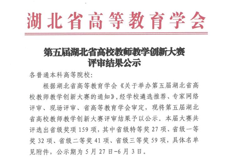 (教学科研部 王希)5月24日至25日,第五届湖北省高校教师教学创新大赛圆满落幕,我校传来捷报——建筑工程学院张巧巧教师团队的《材料力学》课程凭借工程案例教学、课程思政融合、专业实践等创新亮点荣获基础课程副高组三等奖,实现了我校在该项赛事中奖项“零的突破”。这一历史性成绩的取得,既是参赛教师团队锐意创新的成果,更是学校高度重视教育教学工作、教学科研部全力保障支持的生动体现。