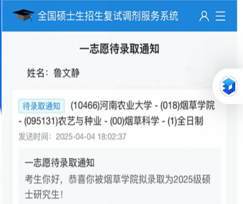 2025年,鲁文静成功上岸河南农业大学研究生。这一成绩的取得,离不开她的坚持和努力,也离不开老师和同学的支持与鼓励。