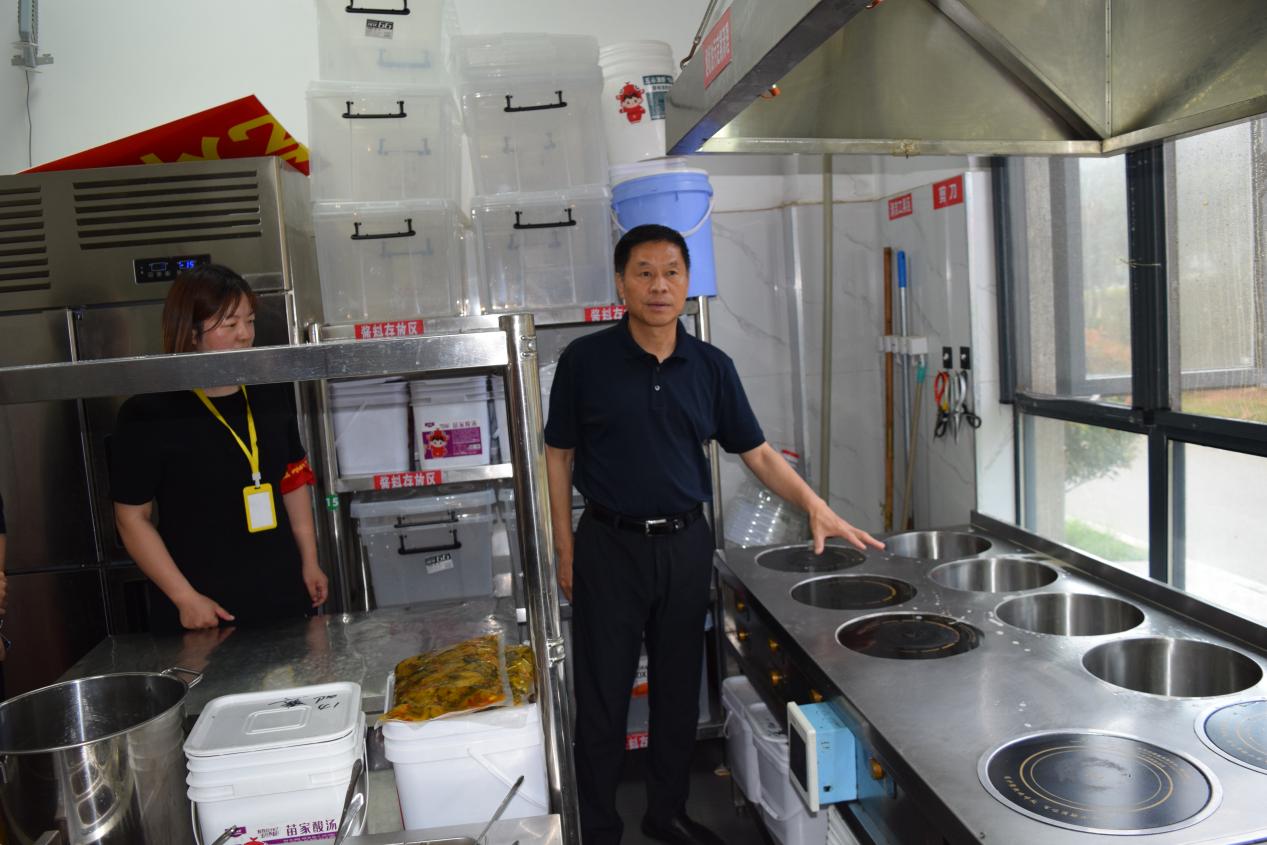 李诗在我校学生食堂认真检查食材检测报告,询问人员健康管理、学生用餐满意度、饭菜价格等情况,并走进后厨仔细察看环境卫生、食材加工程序,指导工作人员要认真排查安全隐患。