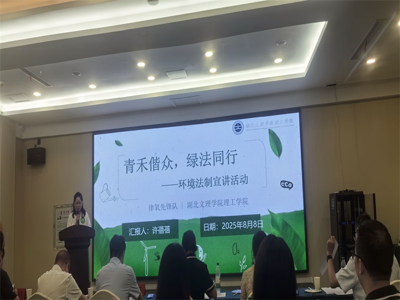 (经管学院 刘紫霞 许蓓蓓)8月8日上午,在襄阳市生态环境局主办的“绿色风”生态志愿服务项目终选路演中,我校经济与管理学院“律氧先锋队”凭借“青禾偕众,绿法同行”环境法制宣讲项目荣获优秀奖,并获得2000元项目扶持资金。