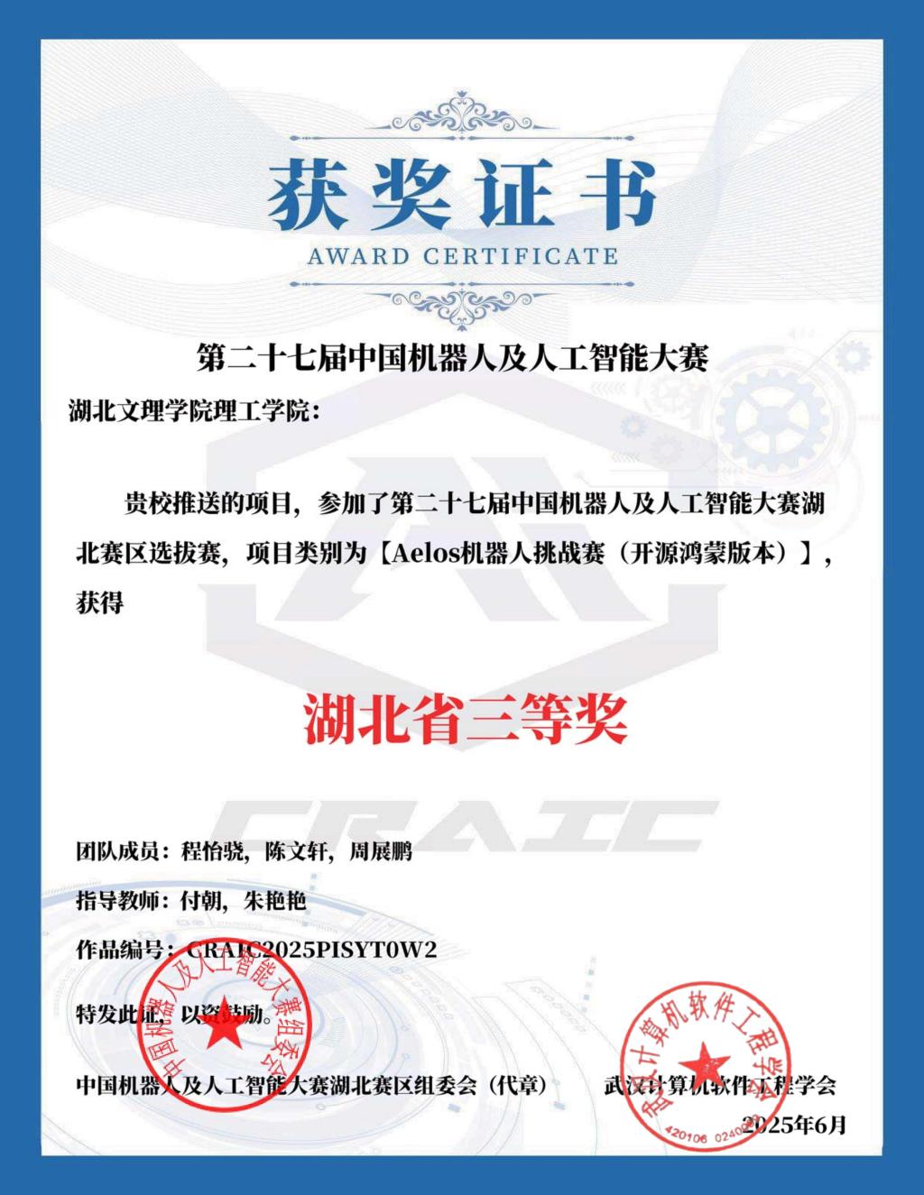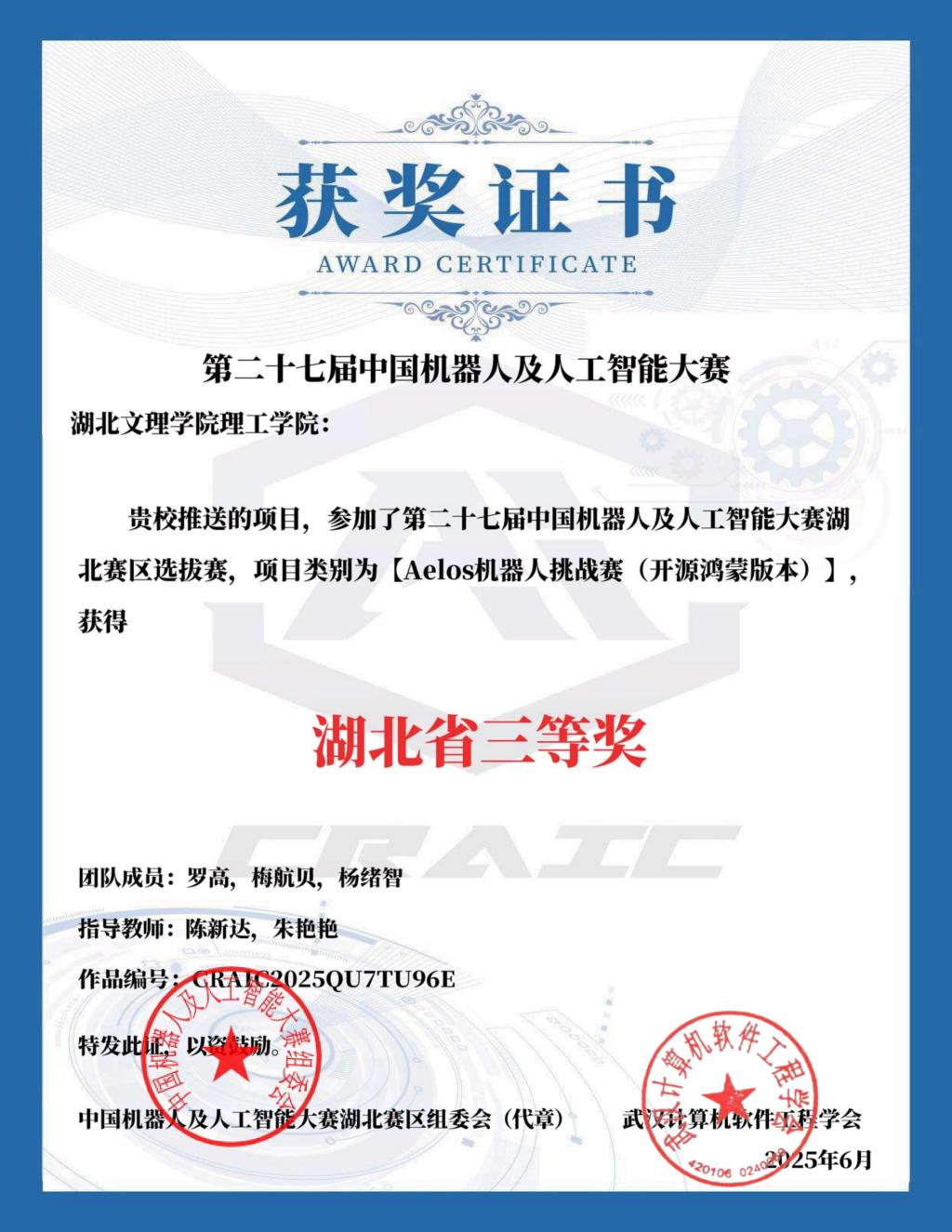 (通讯员 陈新达)近日,第二十七届中国机器人及人工智能大赛全国总决赛落下帷幕。我校电信学院首次组织队伍参赛,凭借出色的技术实力与创新表现斩获佳绩,5支参赛队伍历经省赛、国赛多轮角逐,最终将2项全国二等奖、2项省级三等奖收入囊中,实现学院在该赛事领域的“开门红”。