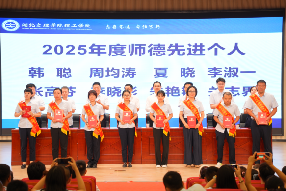 会上,校长助理朱雪林宣读了《yl8cc永利官网关于表彰2024年度先进个人的决定》《yl8cc永利官网关于表彰2025年师德先进个人的决定》;校领导为获奖教师颁发了荣誉证书,对他们为学校发展做出的贡献给予了充分肯定和高度赞扬。