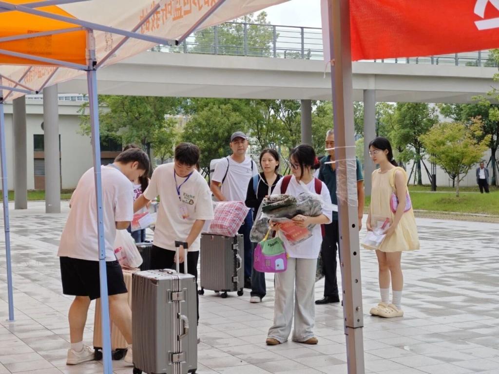 在各二级学院报到点,学生志愿者和工作人员正有条不紊地进行着新生身份核验、材料发放等工作。校园主干道上,摆渡车、后勤保障车辆穿梭不停,将新生行李统一运往宿舍区。“虽然下着雨,但学校的安排很周到,志愿者全程‘一对一’引导,连行李搬运都有人帮忙,让我们很放心。”第一天报到新生及其家长对学校周到细致的迎接服务连声称赞。