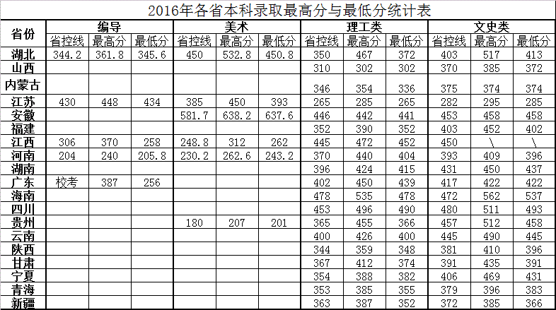 2016年各省本科录取最高分与最低分统计