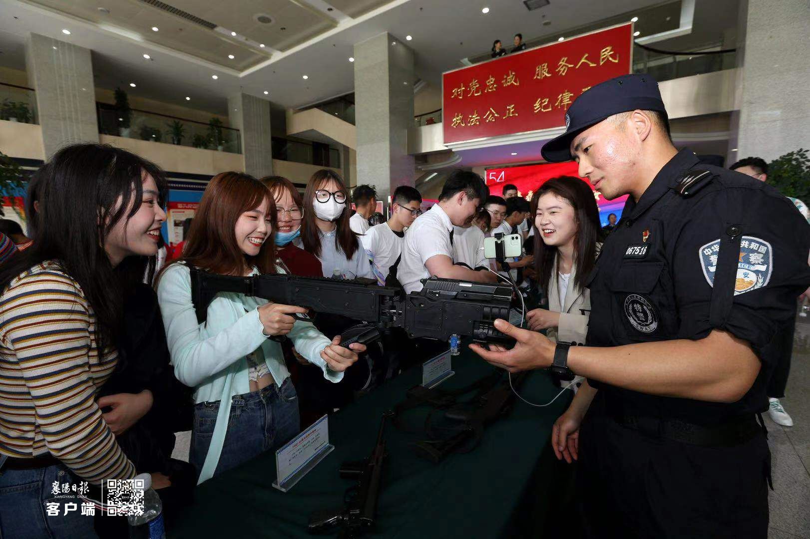 4月29日,襄阳市公安局举行“五四”青年节警营开放日活动,邀请yl8cc永利官网学生走进警营参观互动。