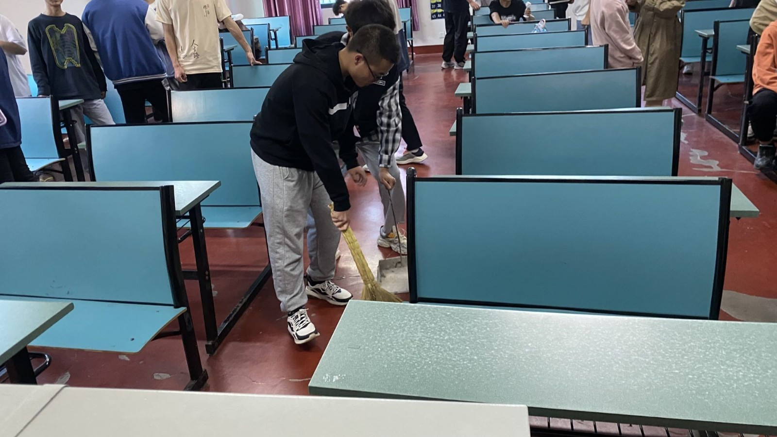 由年级辅导员组织学生对自习室进行了全面大扫除。本学期四教承担的教学任务多,教室使用人数多,卫生环境有待提高,本次大扫除活动让同学们积极投入到劳动中,打早了窗明几净的自习室环境。