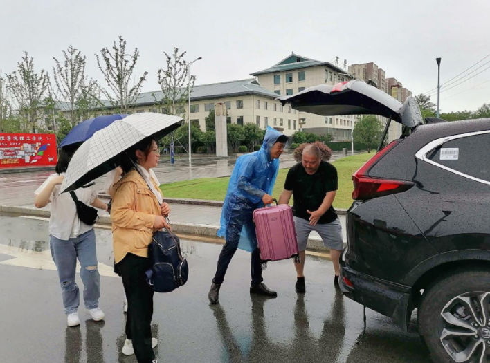 27日上午11时许,到了离别的时刻,雨依然不停飘洒。yl8cc永利官网校门内,一辆大巴车正在等候毕业生,它会将送毕业生到襄阳各个火车站。一旁的临时休息点内,为毕业生准备了矿泉水、雨衣、口罩等物品。与此同时,该校常务副院长耿帮才也在等待着毕业生到来,不一会儿,陆续有学生推着行李箱经过,耿帮才冒雨接过学生行李,询问学生如何返程。他将有的学生送到校内大巴上,决定自行离校的学生,则将他们一一送到校门口马路边,帮忙将行李搬上出租车或私家车。