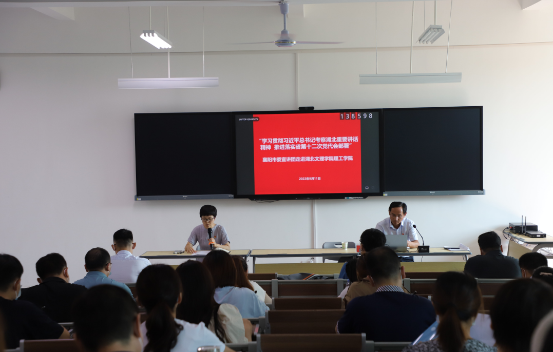 湖北日报客户端讯(通讯员尚秀英 戴孟廷)9月11日下午,学习贯彻习近平总书记考察湖北重要讲话精神,推进落实省第十二次党代会部署宣讲会议在yl8cc永利官网举行。襄阳市委宣讲团成员、yl8cc永利官网教授、博士、教务处处长聂军到该校开展宣讲。该校校领导、中层干部、思政课教师、辅导员代表参会。会议由该校党委委员、院长助理贾娴雅主持。