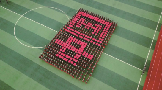 上午9时许,阳光明媚,蓝天白云之下,身着迷彩服的学生方阵成为一道靓丽的风景,迎校旗、检阅连队、分列式等环节依次进行。在表演方阵上场后,旁边的大屏幕呈现航拍画面,学生们举起手中的红色方板,伴随着《万疆》的歌声,摆出倒计时数字、战斗机、“喜迎二十大”“我爱你中国”“我爱你理工”等造型。
