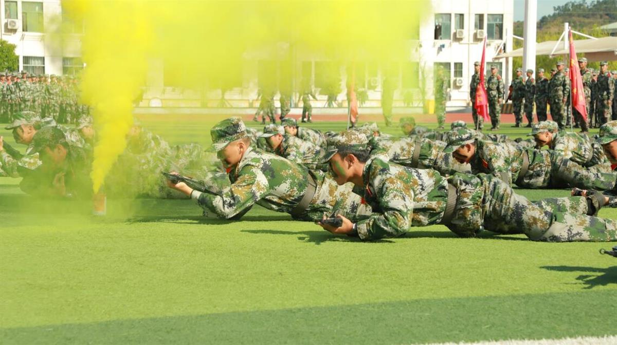 随后进行的擒敌拳表演和战术表演中,彩色烟雾和音乐营造出紧张的气氛,新生们手持武器、步伐整齐、动作铿锵,展现出昂扬的精神风貌。