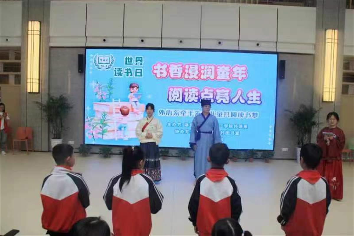 活动在该校图书馆举行,大学生蒋诗情等人通过演绎情景剧《匡衡凿壁偷光》和《宋应星买书》,表达古人对知识的渴望和对书籍的珍爱,以此鼓励同学们以读书长知识,以读书增智慧,以读书促养成,以读书树理想,以读书育人格。