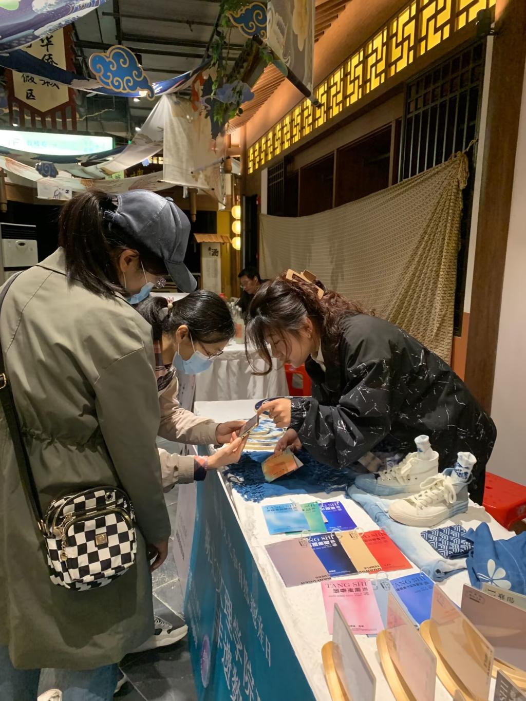 本次活动主要向大家展示了艺术与传媒系视觉传达专业数字文创研发团队以襄阳文化为载体研发的AR数字明信片以及艺术与传媒系学生们学习非遗文化后制作的部分扎染和蜡染作品,给大家带来了一份饕餮盛宴。