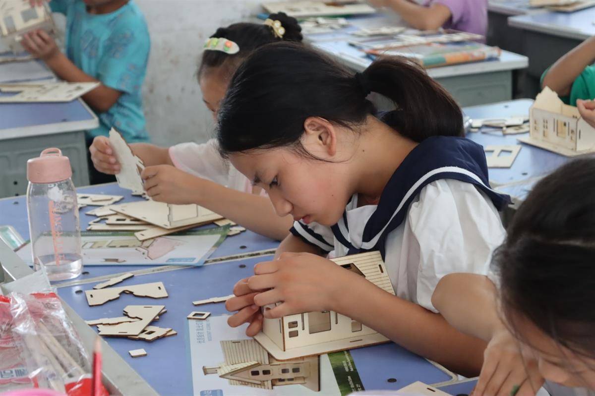 在15天的志愿服务活动中,志愿者们还把建筑工程系的专业知识融入服务中,带领小学生完成了建筑模型的制作,感受我国古建筑的魅力。