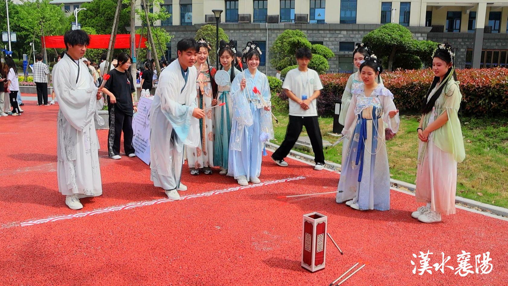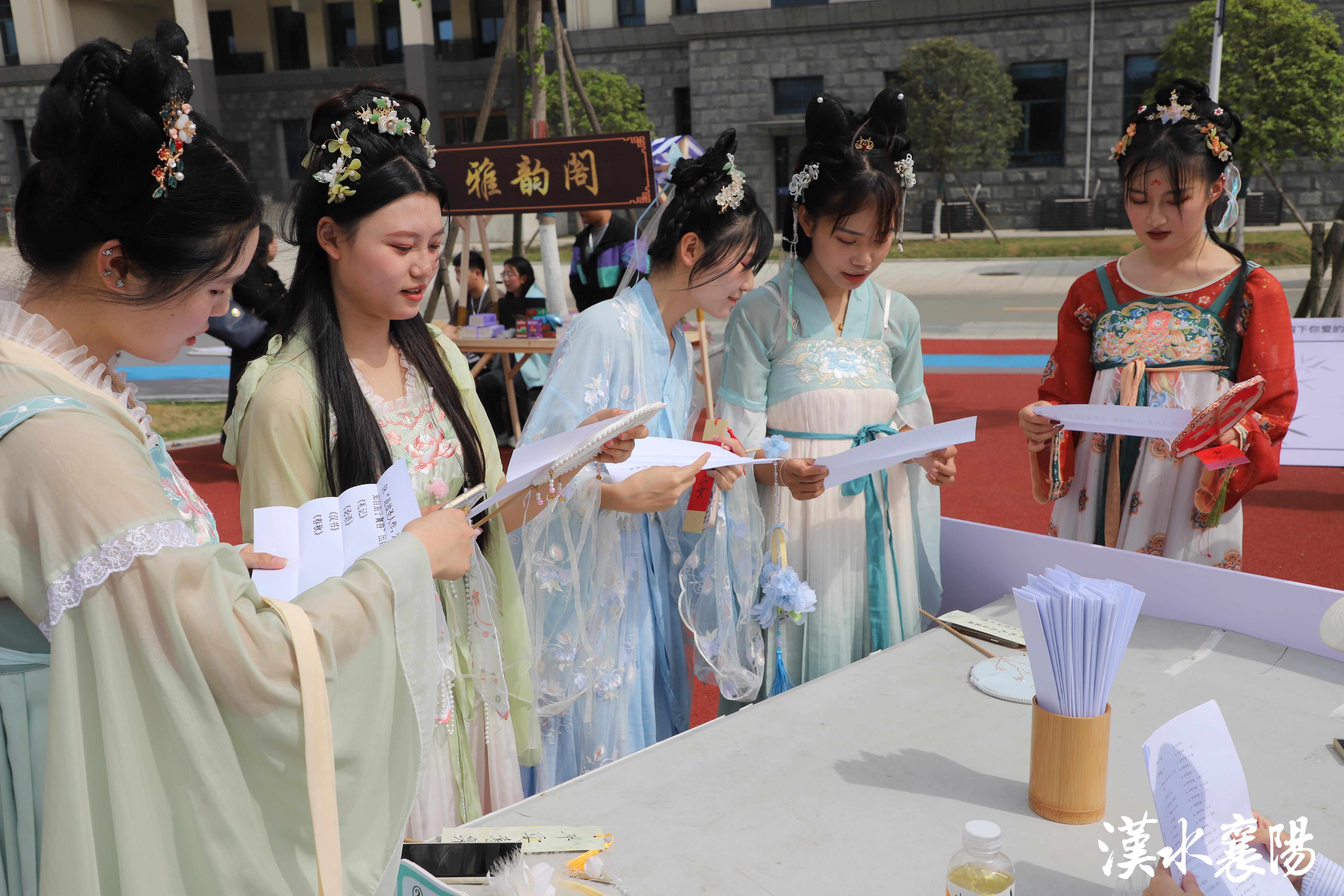 而在学校图书馆前的广场上,以“赴诗词盛会,展理工风华”为主题的诗词大赛活动也吸引了大量学生。活动通过文学常识问答、诗词配对、文化素养比拼、飞花令等环节,让大学生要成为传统文化的传播者。
