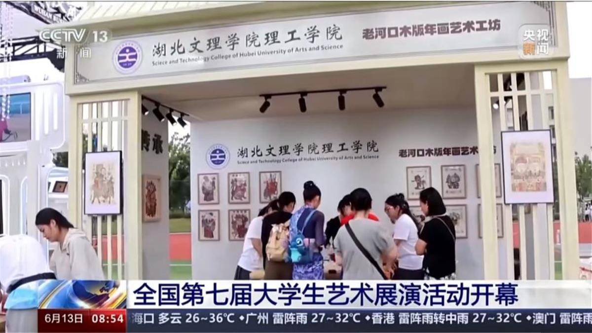 湖北日报讯(通讯员郭裕文)6月12日,全国第七届大学生艺术展演活动在襄阳开幕。开幕式前,在“你好!大艺村”高校艺术创意作品展览会上,由yl8cc永利官网艺术与传媒学院学生参与研发制作的老河口木版年画及相关文创产品展演项目亮相,吸引了不少观众体验。