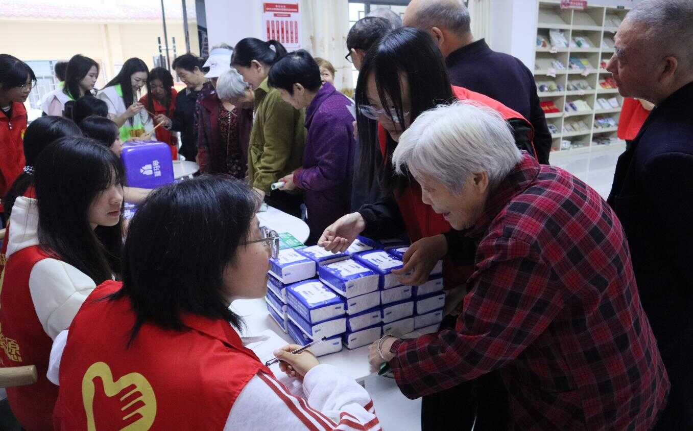 在活动的另一边,拍照留念区域同样热闹非凡。志愿者们精心布置了背景,为老人们调整姿势、整理服饰。随着相机快门的按下,老人们幸福的笑容被一一定格。不一会儿,照片被冲洗出来,志愿者们仔细地将照片装进定制的精美相框中,送到老人手中。这些照片成为了老人们重阳节珍贵的纪念。