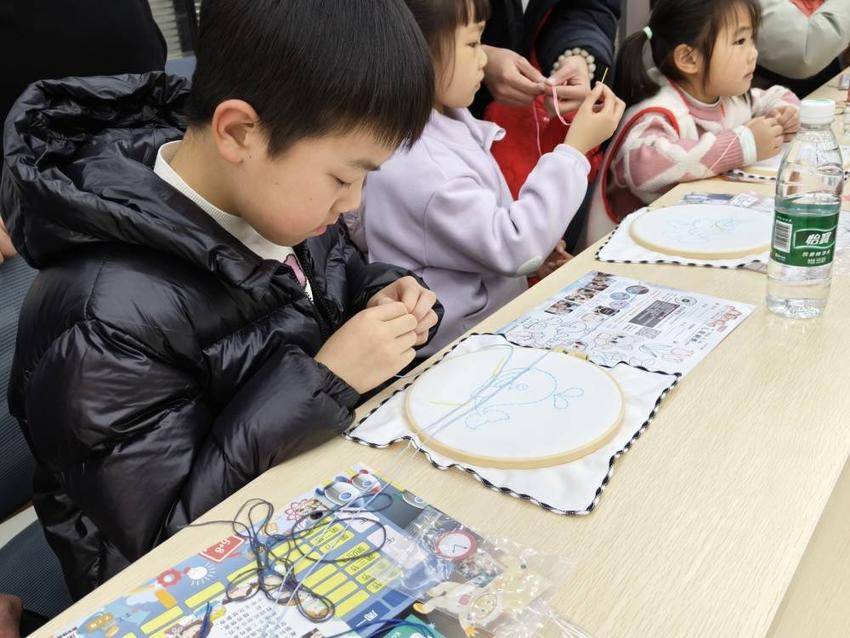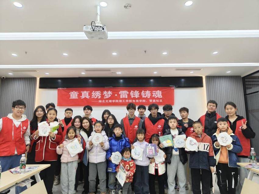 大学生志愿者通过提问互动、分享雷锋故事的方式宣扬雷锋精神。小朋友们认真听讲,积极举手发言。随后,志愿者开展手工刺绣教学,细致讲解操作刺绣的要点与注意事项。小朋友们领取材料包后,在志愿者们的指导下拿起针线,小心翼翼地开始了自己的刺绣之旅。一开始,有些小朋友不太熟练,针法也不太整齐,但志愿者们总是及时给予鼓励和帮助,手把手地教他们如何穿针引线、如何绣出漂亮的图案。随后,小朋友们逐渐掌握了刺绣的技巧,一幅幅精美的刺绣作品也在他们的手中逐渐成型。小朋友们绣制的图案丰富多样,有鲜艳的花朵、可爱的小动物,每一针每一线都凝聚着他们的用心和热情,也传递着对雷锋精神的敬意和传承。活动尾声,全体人员一同合影留念,为此次活动画上圆满句号。