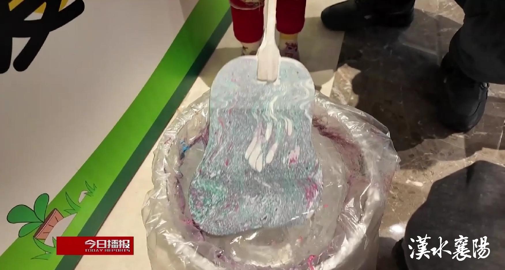襄阳科技职业学院大学生周金然说:“非遗版画作为中华传统艺术瑰宝,历史悠久,有着深厚的文化底蕴,它以刀代笔,以纸为板在不同的材料上雕刻出自己喜欢的图案,再经油墨转印,呈现出作品。”