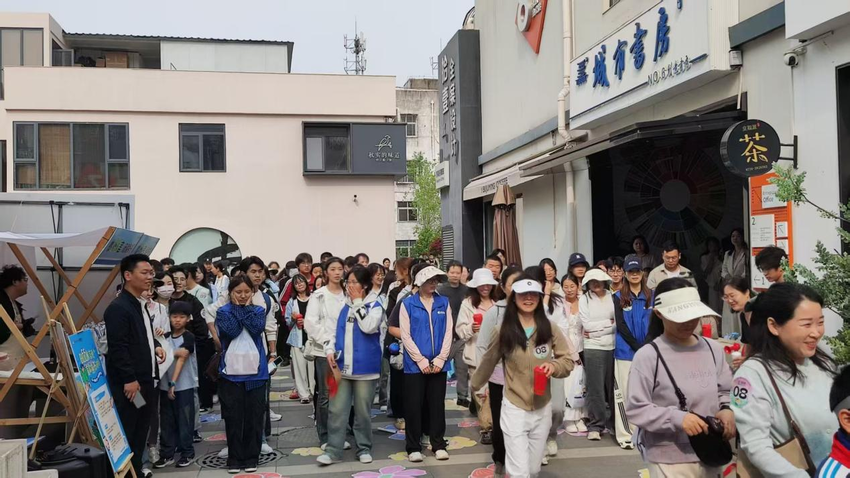 活动中,徒步“搭子”们一路感受春天的气息,一路结识志同道合的朋友,收获友谊。活动从建设汉江创意园城市书房启程,参与者先通过旧书盲盒交换开启阅读惊喜——以旧书换“盲盒书”,提供者还可获咖啡券及文创礼品。随后沿“国投·襄阳印——明珠广场——米公祠”路线行进。并在国投·襄阳印与明珠广场两个打卡点,分别设置“成语竞智”“诗词大会”挑战,各小组需在5分钟内完成成语答题或古诗对答,成功通关即可加盖“文化传承章”。这些精心设计的活动环节,将阅读与运动巧妙融合,覆盖古诗、成语、名著等多领域内容,打破了传统阅读场景的单一性,为不同年龄段和兴趣爱好的参与者带来了充满知识性与趣味性的文化体验。
