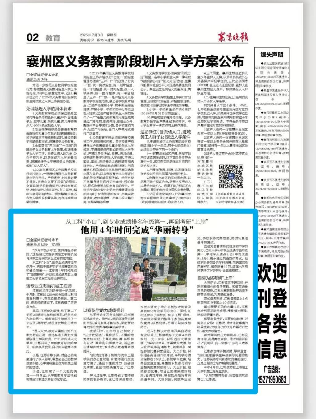 从工科“小白”,到专业成绩排名年级第一,再到手握多项学科竞赛国家级和省级荣誉……江彬用4年时间完成了“华丽转身”,并以优异成绩考取上海理工大学机械工程专业研究生。