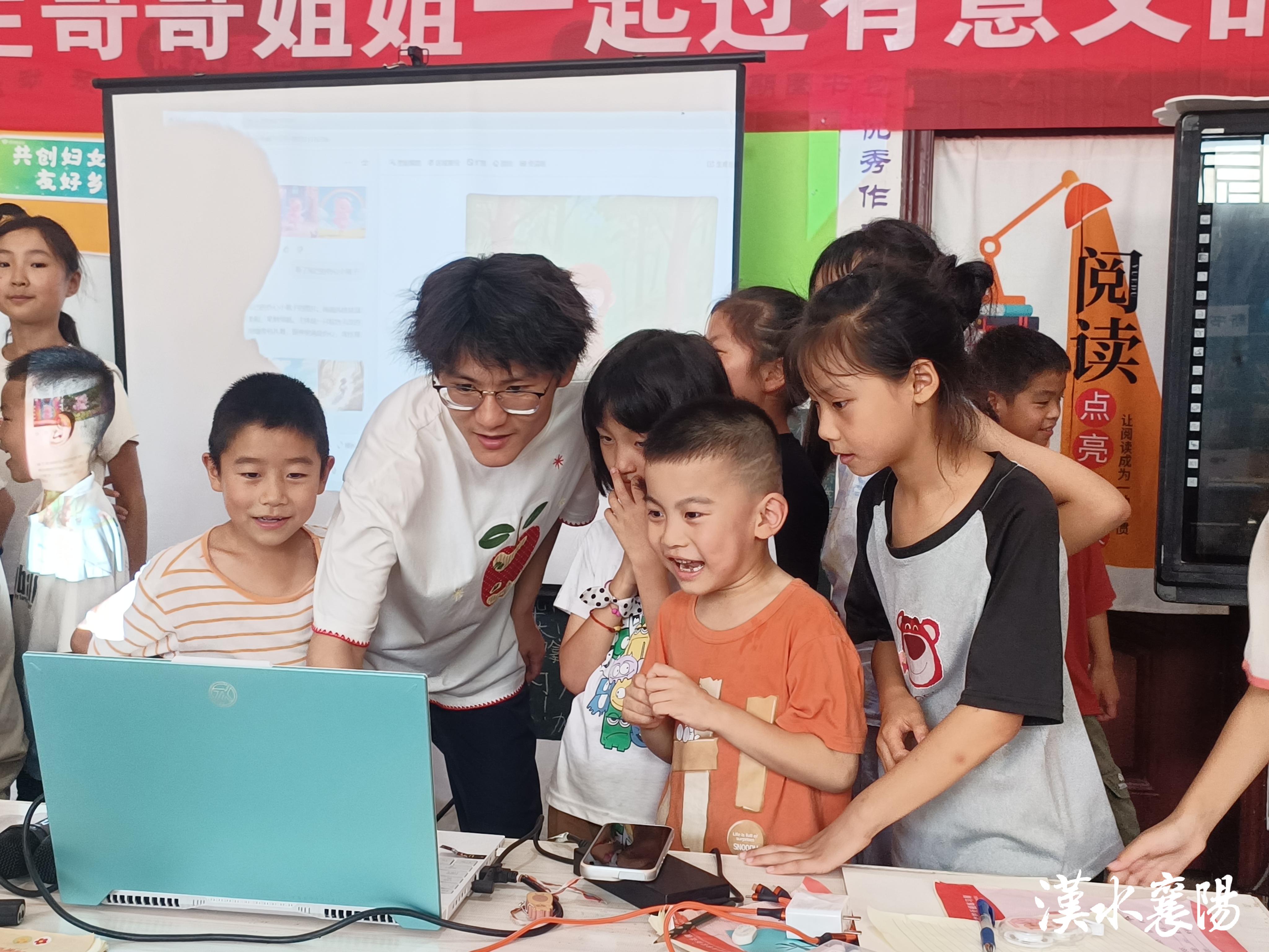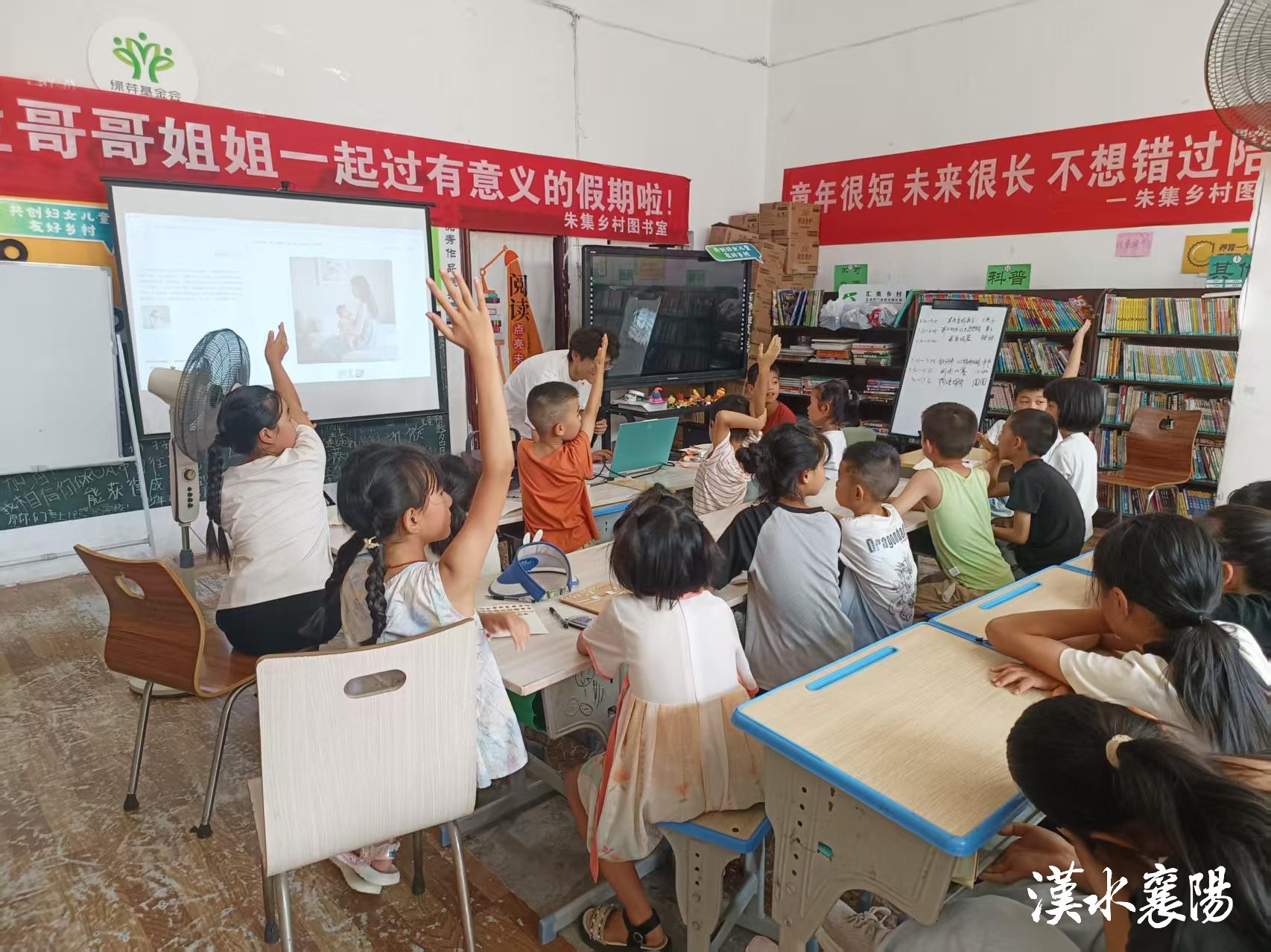 7月7日,朱集乡村图书室变身科技乐园,yl8cc永利官网筑梦朱集服务队志愿者为孩子们带来一场趣味十足的人工智能科普活动。