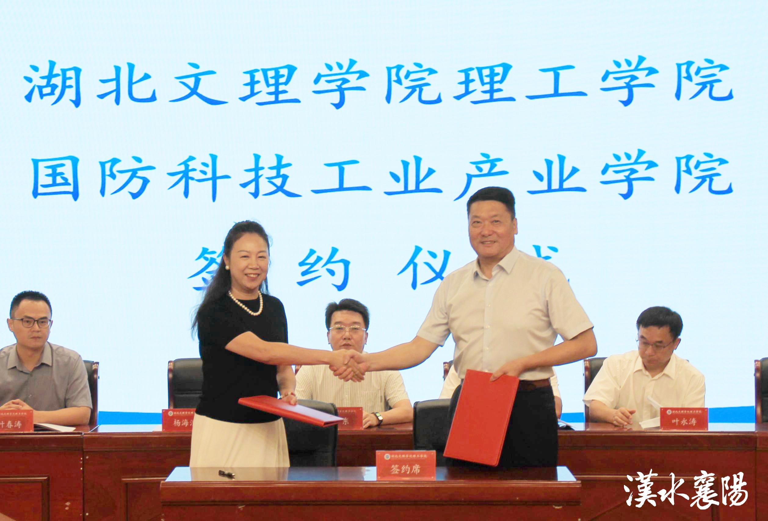 签约仪式上,在全场嘉宾和教师的见证下,校长杨海浪分别与襄阳市国防科技工业协会秘书长张丽、上海联代健康科技有限公司总裁叶春涛签订了产业学院共建协议,宣告了理工学院国防科技工业产业学院和智慧康养产业学院的成立。